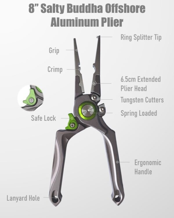 Gear up with the pliers every serious offshore angler needs. The Salty Buddha Offshore Pliers are designed to take on the harshest saltwater conditions with corrosion-resistant construction and a lightweight, aircraft-grade aluminum frame. Strong, precise, and built for daily use, these pliers are an essential tool for rigging, crimping, and handling your catch.