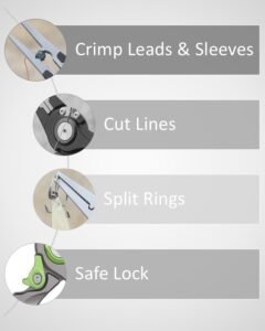 • Multi-Function Jaws – Includes split ring tip, crimping slots, and serrated teeth for precision work.